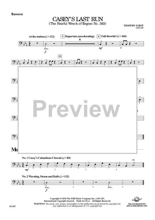 Digital Sheet Music for Casey's Last Run (The Fateful Wreck of Engine No. 382) - Bassoon by Timothy Loest scored for Beginning Band; id:415159