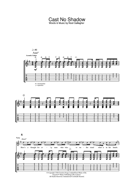 Digital Sheet Music for Cast No Shadow by Noel Gallagher, Oasis scored for Guitar Tab; id:385835