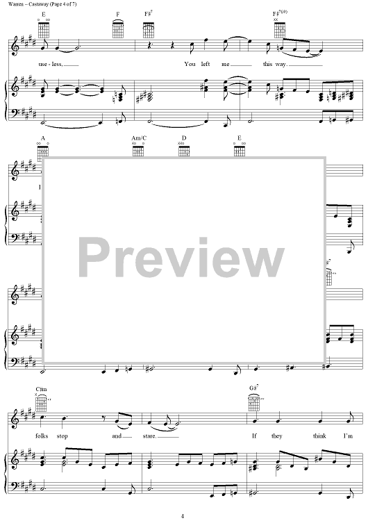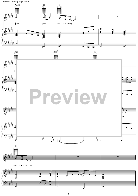 Digital Sheet Music for Castaway by Glenn Warren scored for Piano/Vocal/Chords; id:109792