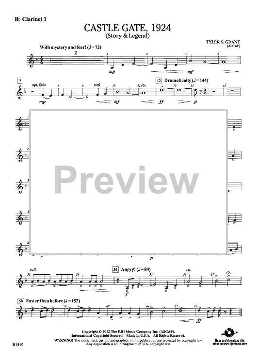 "Castle Gate, 1924 (Story & Legend) - Bb Clarinet 1" Sheet Music by Tyler S. Grant