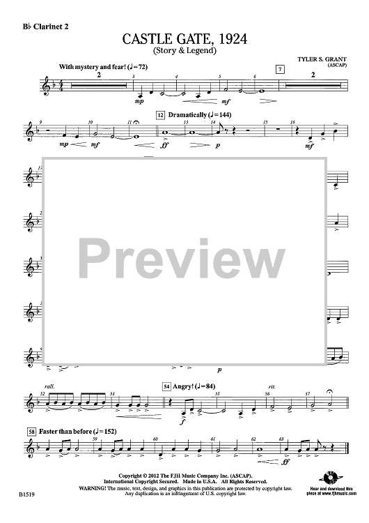 "Castle Gate, 1924 (Story & Legend) - Bb Clarinet 2" Sheet Music by Tyler S. Grant