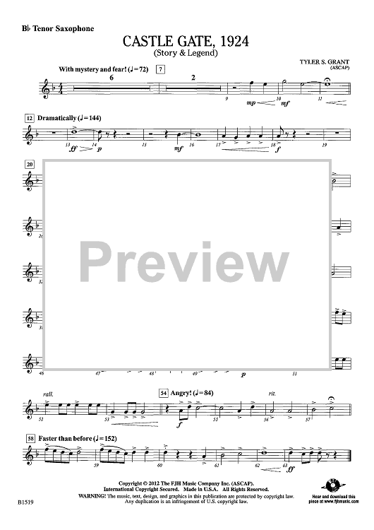 "Castle Gate, 1924 (Story & Legend) - Bb Tenor Sax" Sheet Music by Tyler S. Grant