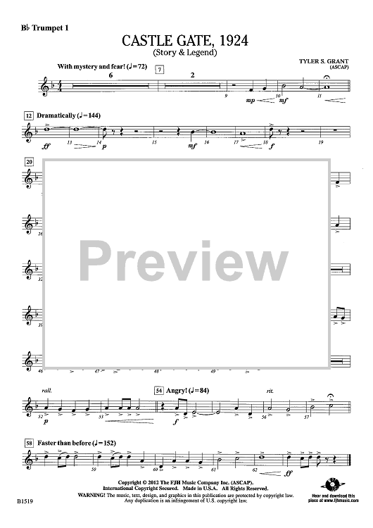 "Castle Gate, 1924 (Story & Legend) - Bb Trumpet 1" Sheet Music by Tyler S. Grant
