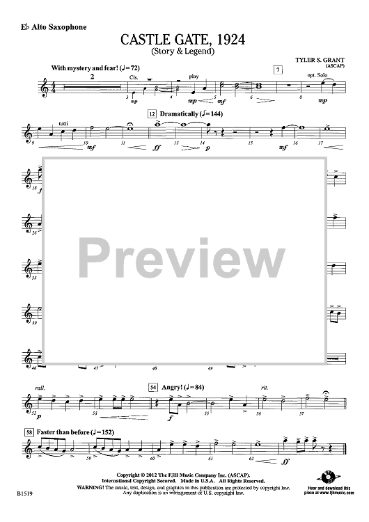 "Castle Gate, 1924 (Story & Legend) - Eb Alto Sax" Sheet Music by Tyler S. Grant