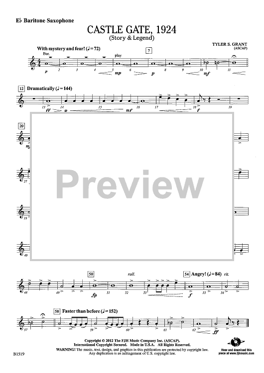 "Castle Gate, 1924 (Story & Legend) - Eb Baritone Sax" Sheet Music by Tyler S. Grant