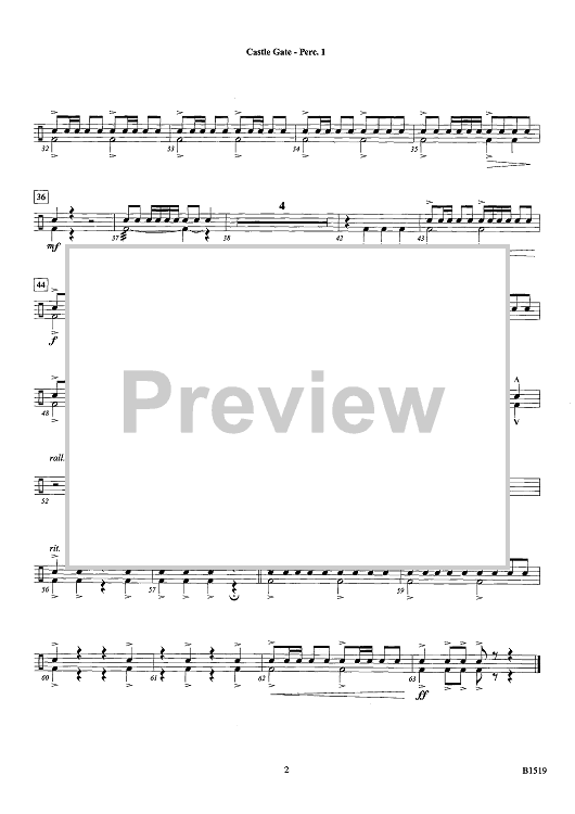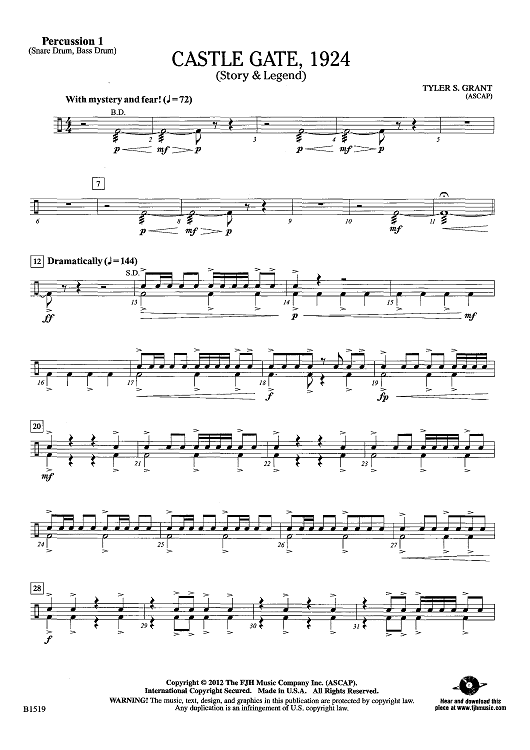 "Castle Gate, 1924 (Story & Legend) - Percussion 1" Sheet Music by Tyler S. Grant