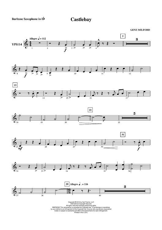 "Castlebay - Baritone Sax" Sheet Music by Gene Milford