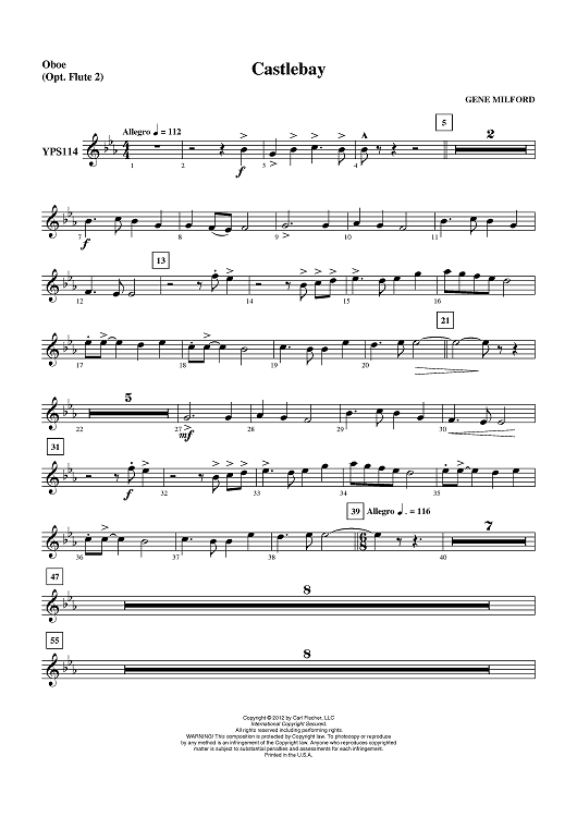"Castlebay - Oboe (Opt. Flute 2)" Sheet Music by Gene Milford