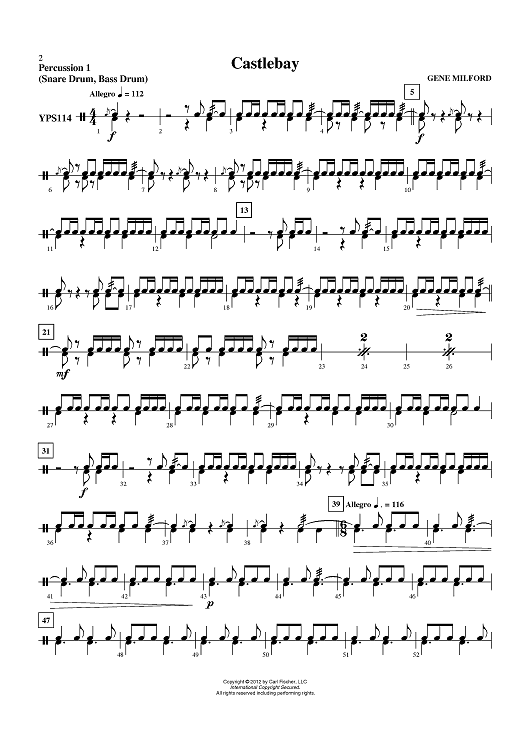 Digital Sheet Music for Castlebay - Percussion 1 by Gene Milford scored for Concert Band; id:431515