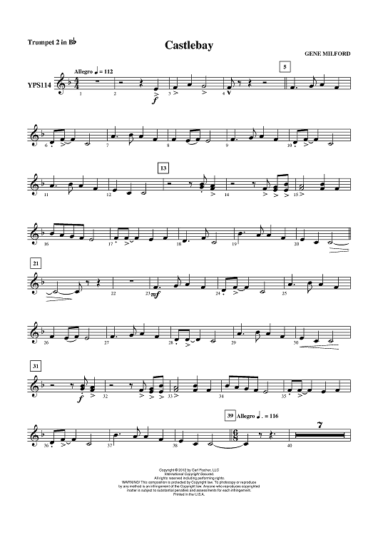 "Castlebay - Trumpet 2 in Bb" Sheet Music by Gene Milford