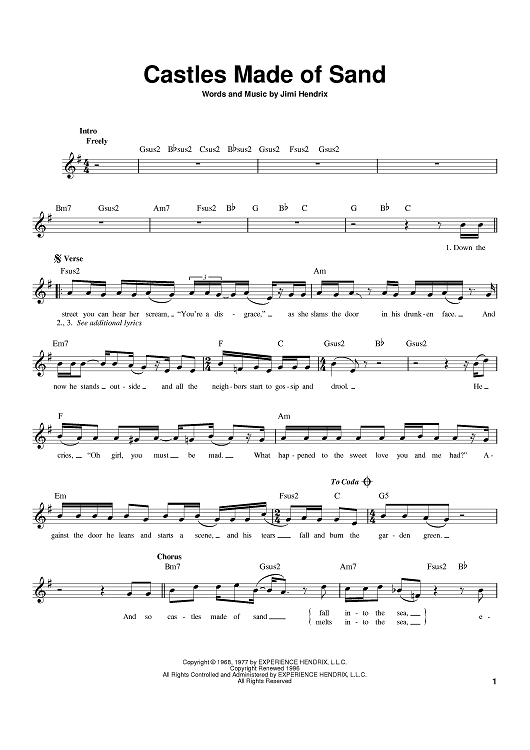 "Castles Made Of Sand" Sheet Music by Jimi Hendrix
