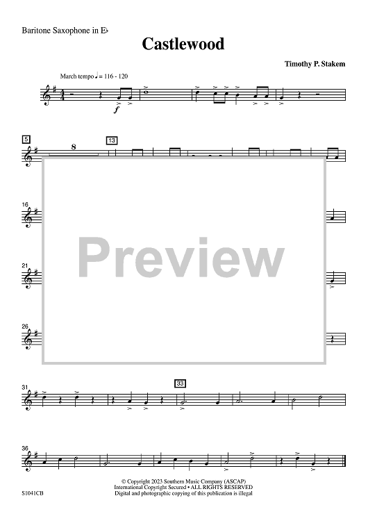 Digital Sheet Music for Castlewood - Baritone Saxophone in Eb by Timothy P. Stakem scored for Concert Band; id:508075