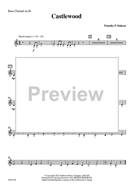 Digital Sheet Music for Castlewood - Bass Clarinet in Bb by Timothy P. Stakem scored for Concert Band; id:508071