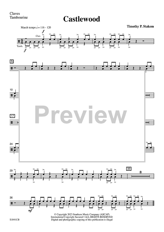 "Castlewood - Claves / Tambourine" Sheet Music by Timothy P. Stakem