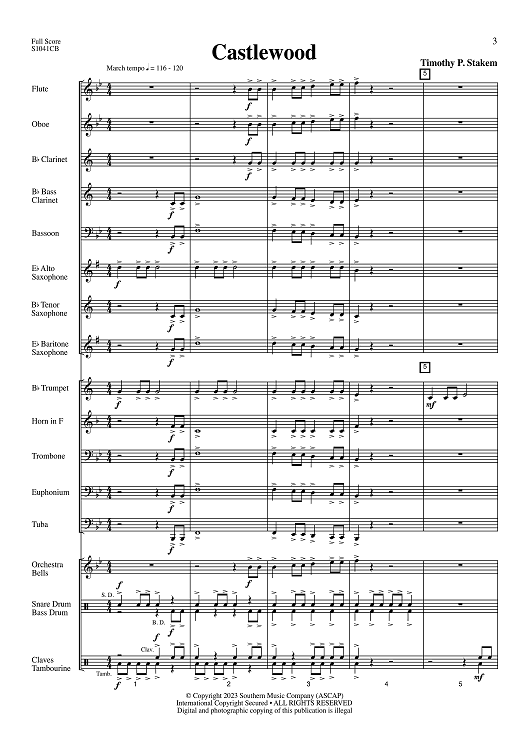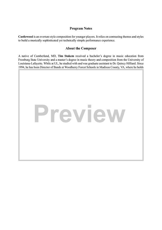 Digital Sheet Music for Castlewood - Full Score by Timothy P. Stakem scored for Concert Band; id:508067