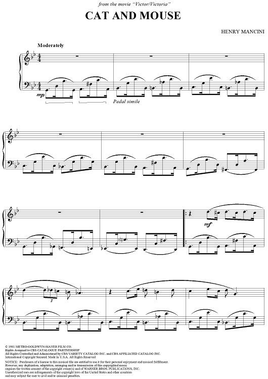 "Cat and Mouse" Sheet Music by Henry Mancini