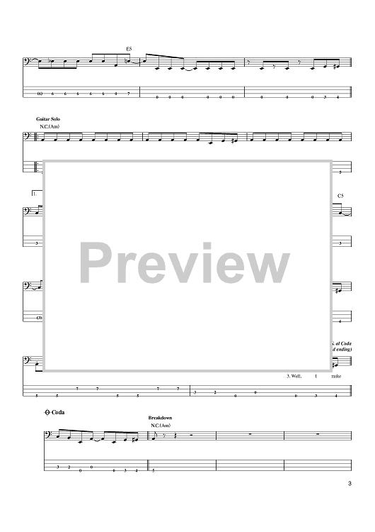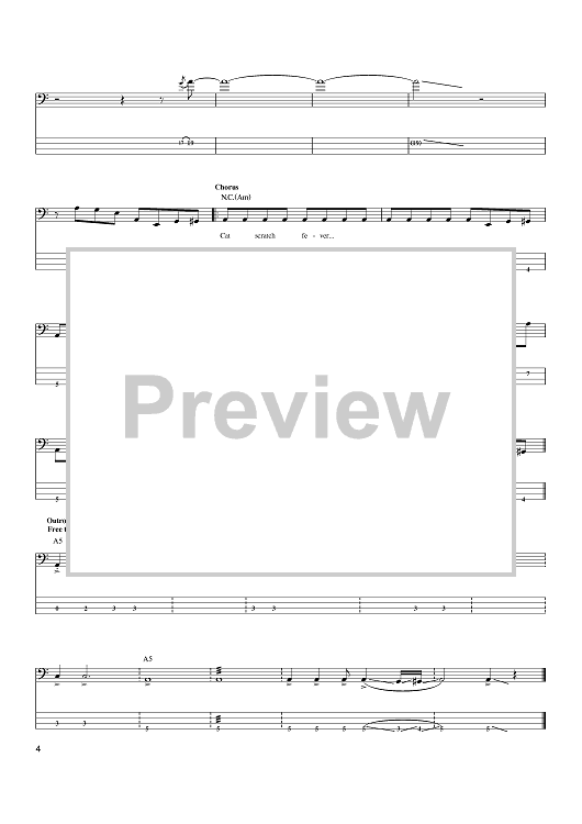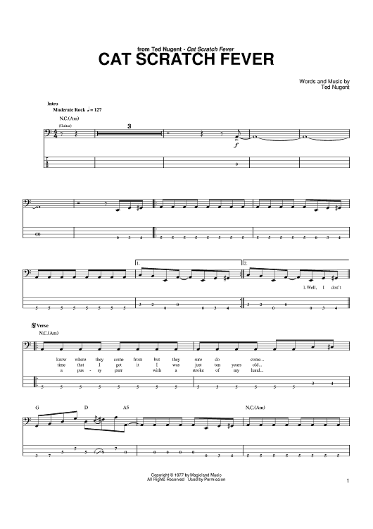 Digital Sheet Music for Cat Scratch Fever by Pantera, Ted Nugent scored for Bass Tab; id:383173