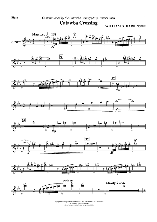 Digital Sheet Music for Catawba Crossing - Flute by William G. Harbinson scored for Concert Band; id:430543
