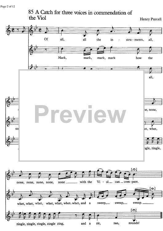 Digital Sheet Music for Catches No. 84 - 95 from The Catch Book (Oxford) - Score by , Henry Purcell scored for SATB Choir; id:348186