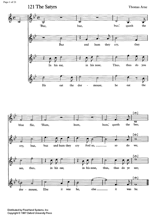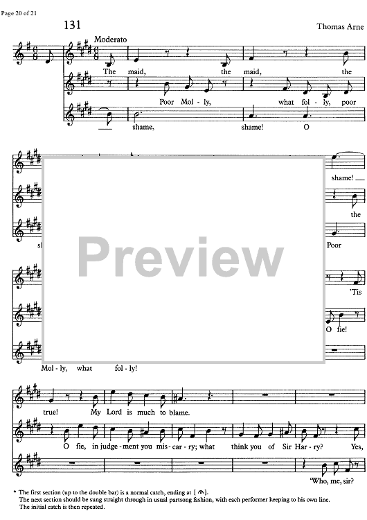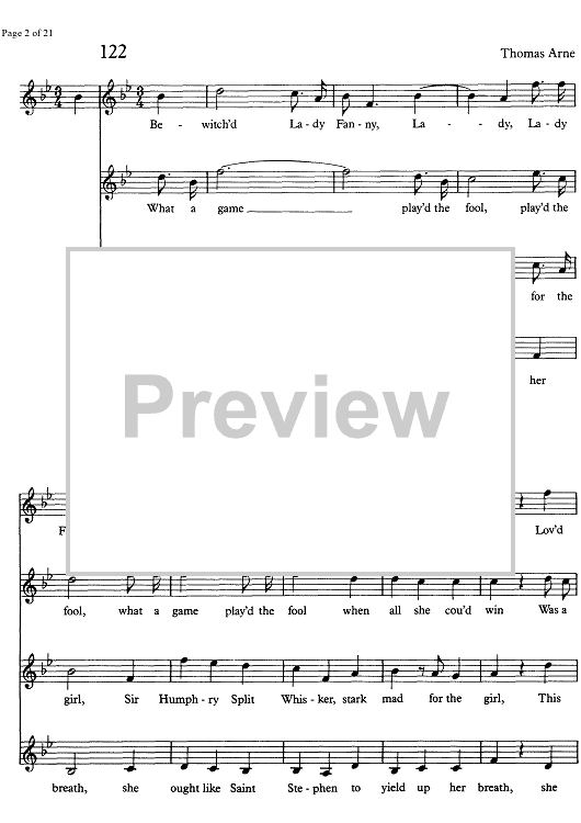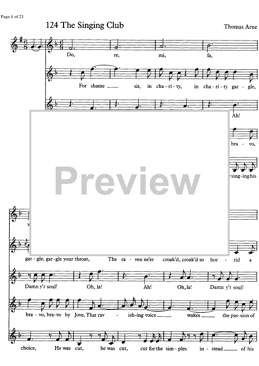 Digital Sheet Music for Catches No.121-131 from The Catch Book (Oxford) - Score by Thomas Arne scored for SATB Choir; id:348195