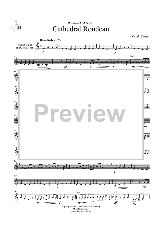 Digital Sheet Music for Cathedral Rondeau - Trumpet 2 in B-flat (alt.) by Randy Snyder scored for Brass Quartet; id:361036