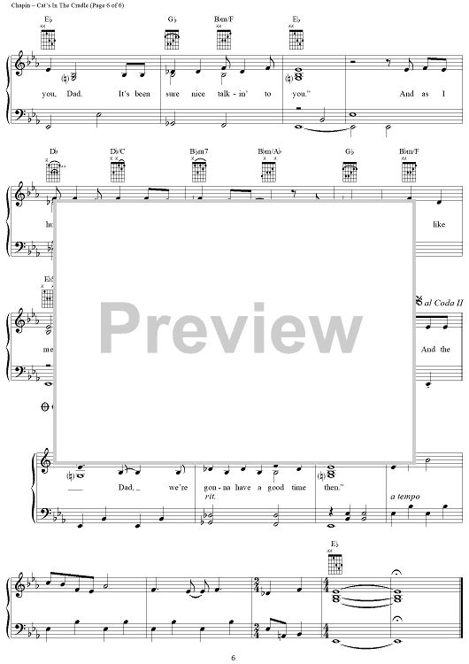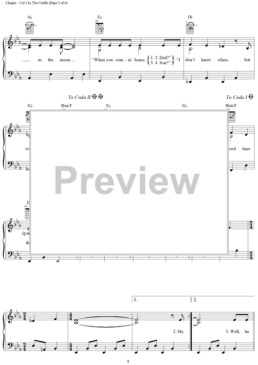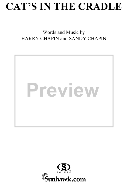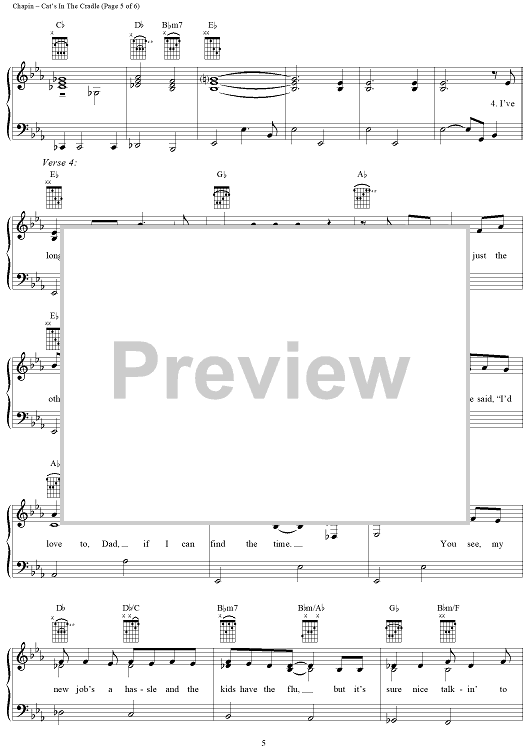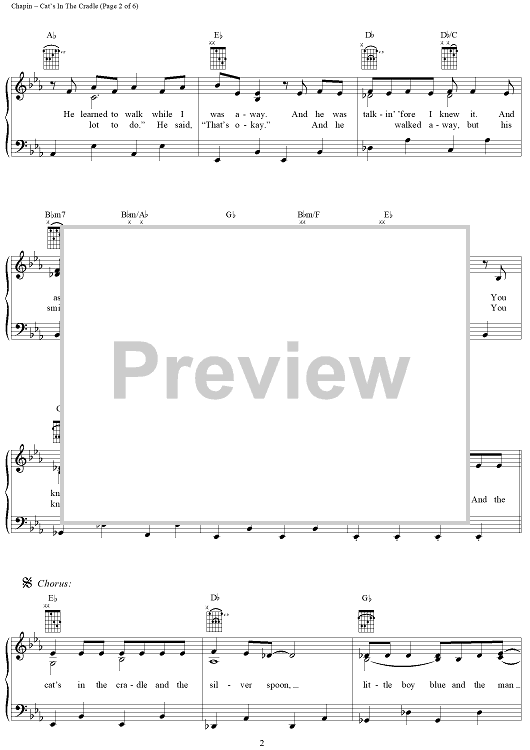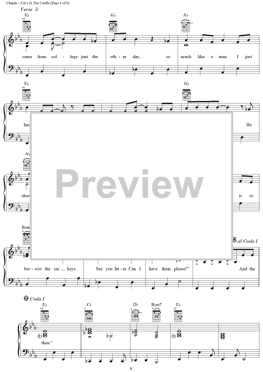 Digital Sheet Music for Cat's in the Cradle by Harry Chapin, Sandy Chapin scored for Piano/Vocal/Chords; id:202220