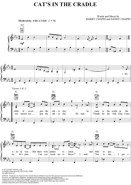 "Cat's in the Cradle" Sheet Music by Harry Chapin