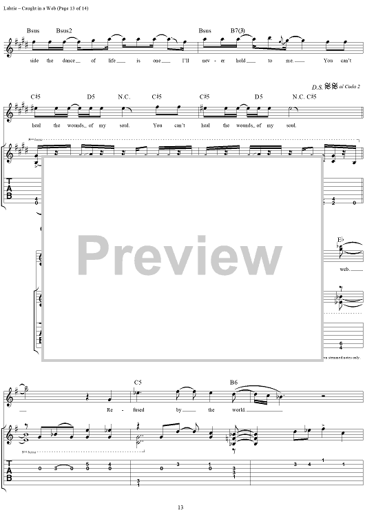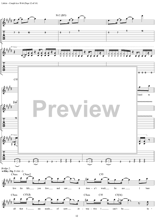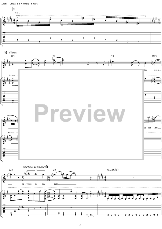 Digital Sheet Music for Caught in a Web by John Myung, Michael Portnoy, Dream Theater, John Petrucci, Keb' Mo', James LaBrie scored for Guitar Tab/Vocal; id:114106
