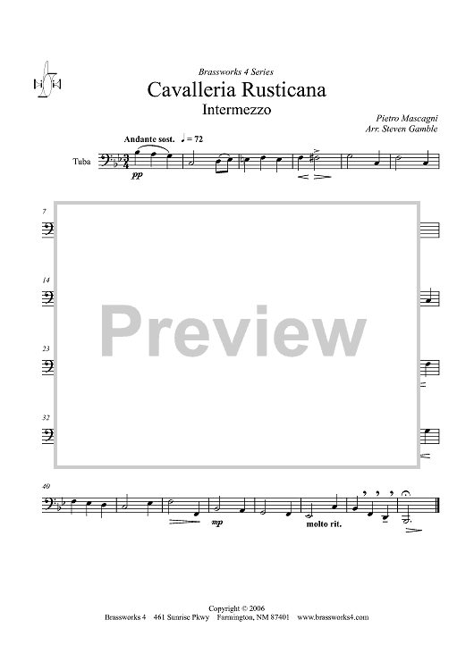 Digital Sheet Music for Cavalleria Rusticana - Tuba by Pietro Mascagni, Steven Gamble scored for Brass Quintet; id:358097