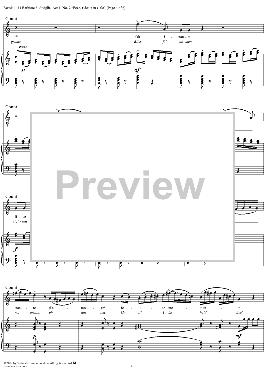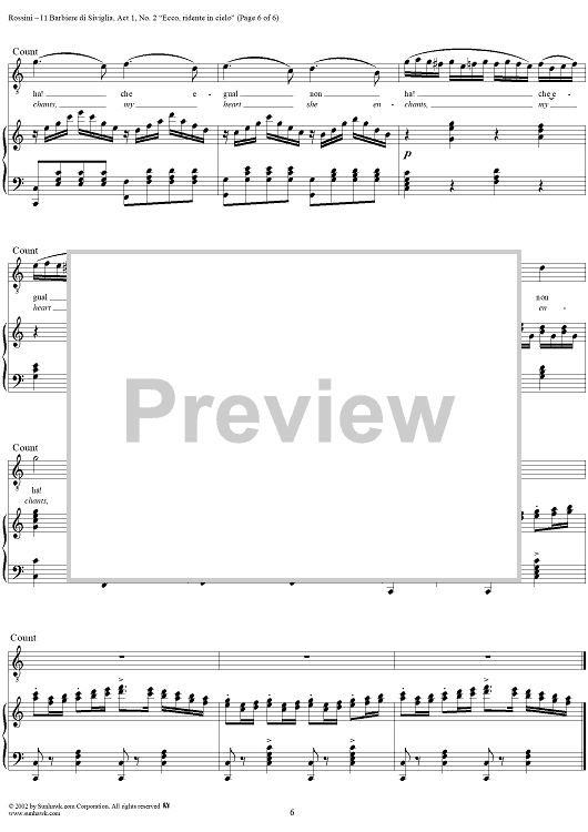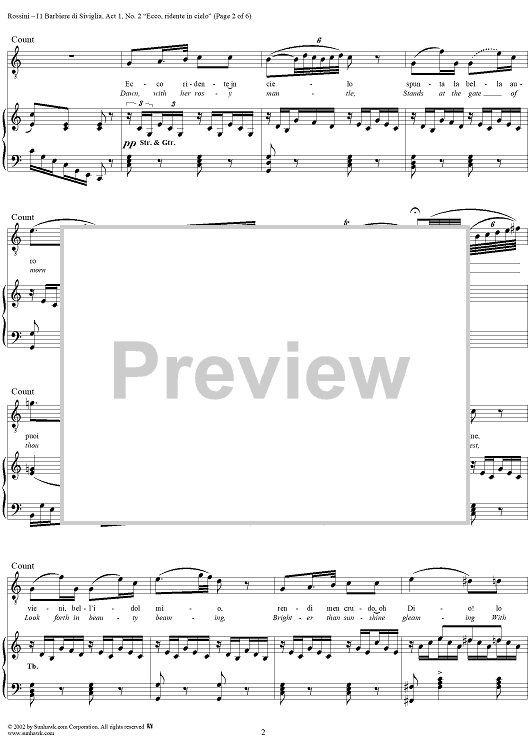 Digital Sheet Music for Cavatina: Ecco ridente in cielo, No. 2 from "Il Barbiere di Siviglia" by Gioachino Rossini, Cesare Sterbini scored for Voice/Piano; id:254348