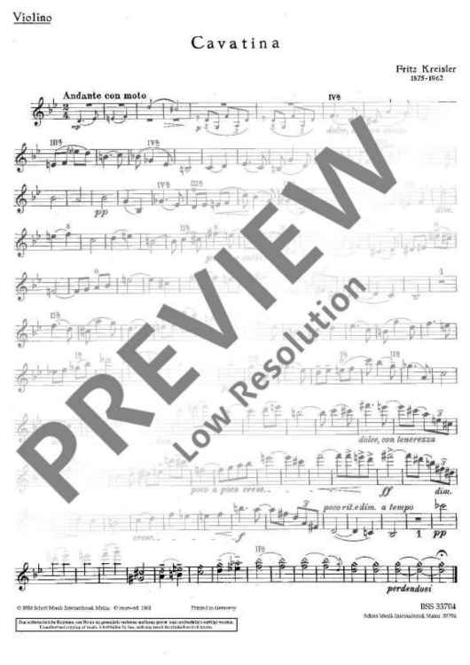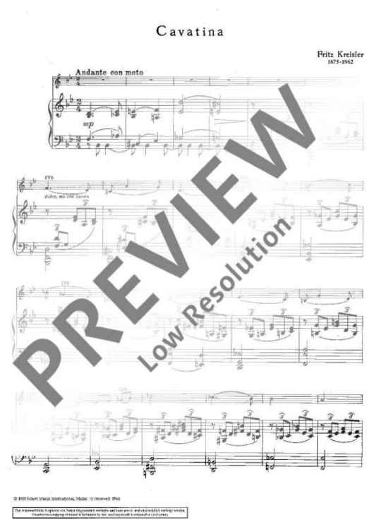 Digital Sheet Music for Cavatina by Fritz Kreisler scored for Violin And Piano; id:471480