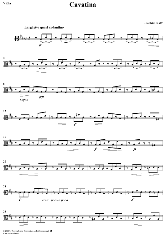 "Cavatina - Viola" Sheet Music by Joseph Raff