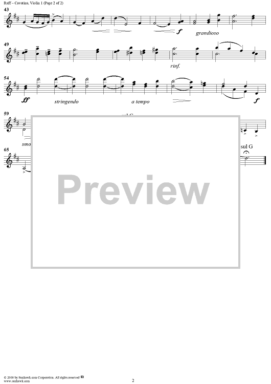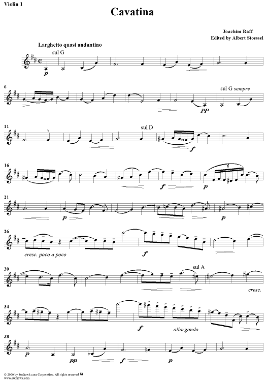 "Cavatina - Violin 1" Sheet Music by Joseph Raff