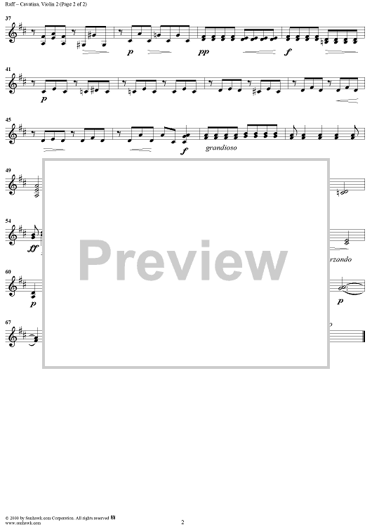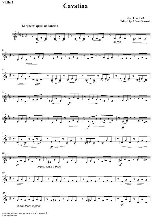 "Cavatina - Violin 2" Sheet Music by Joseph Raff