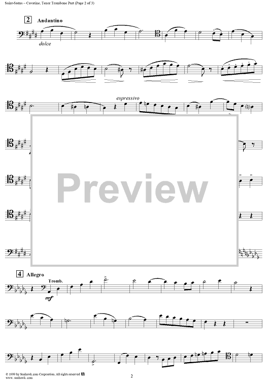 "Cavatine - Trombone" Sheet Music by Camille Saint-Saëns