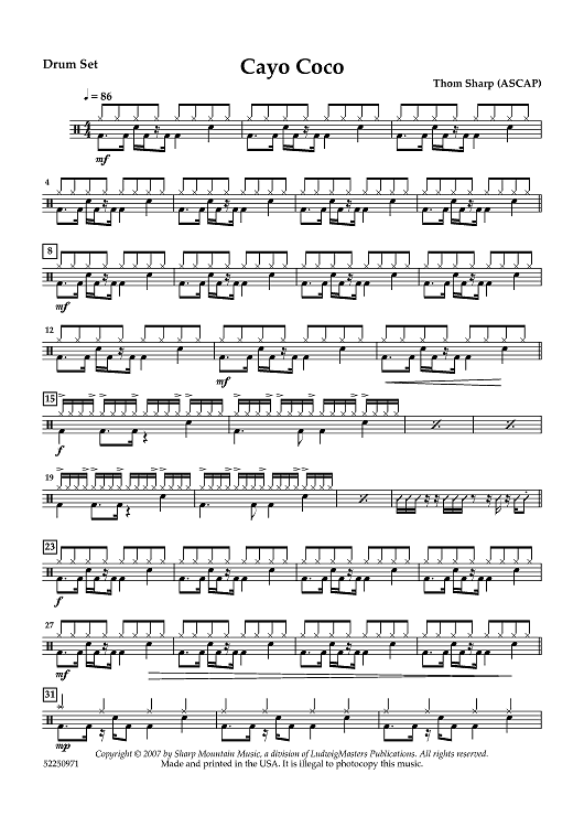 "Cayo Coco for String Orchestra and Rhythm - Drum Set" Sheet Music by Thom Sharp