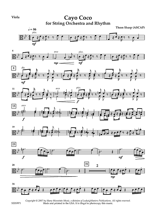 Digital Sheet Music for Cayo Coco for String Orchestra and Rhythm - Viola by , Thom Sharp scored for String Orchestra; id:460987