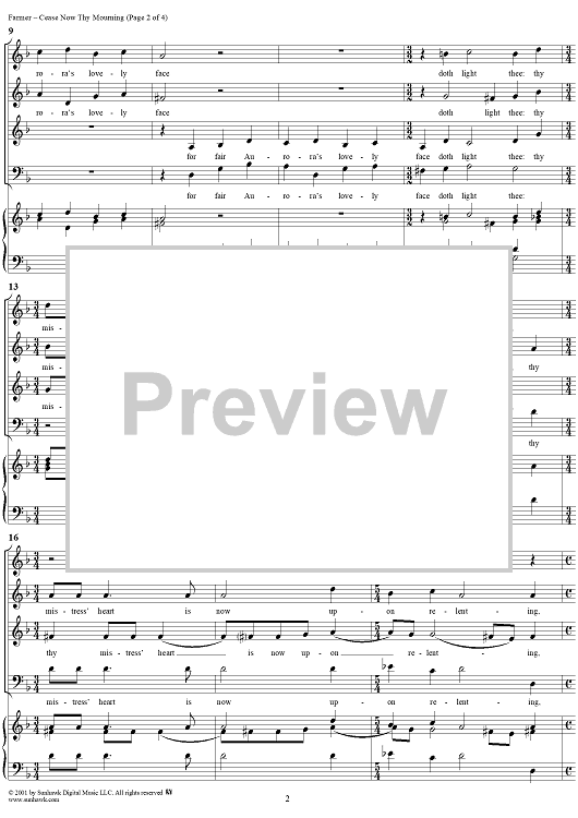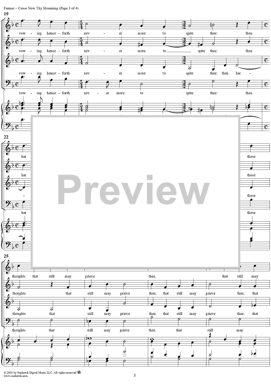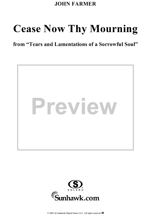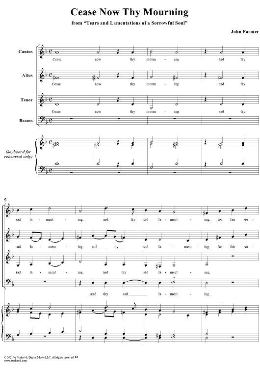 "Cease Now The Mourning" Sheet Music by John Farmer