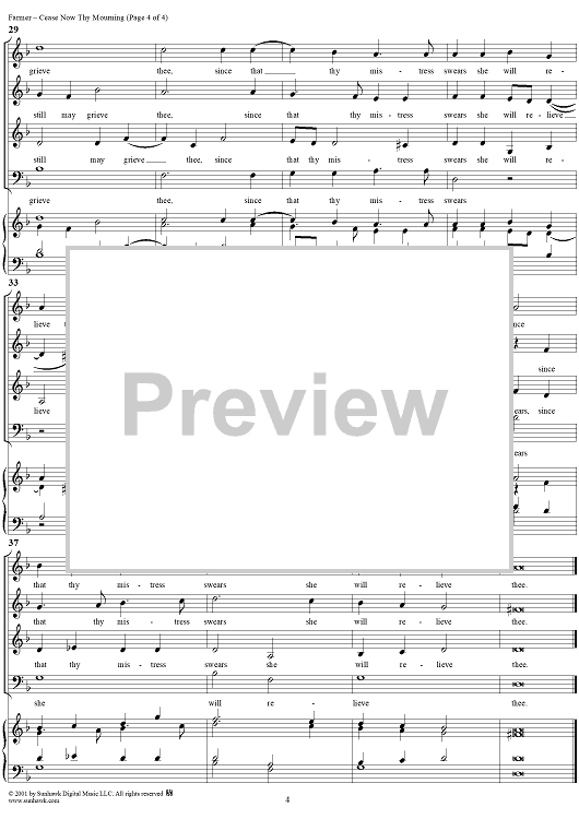 Digital Sheet Music for Cease Now The Mourning by John Farmer scored for Four-part Mixed Chorus; id:266434