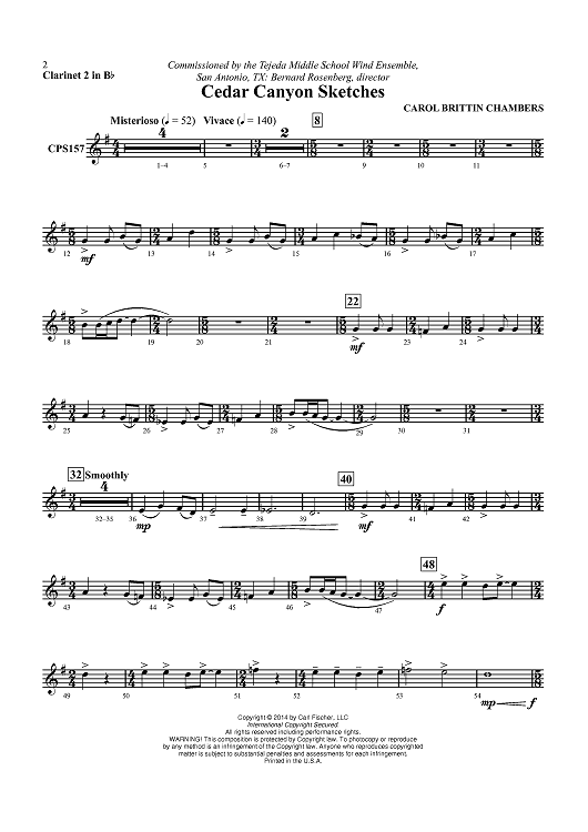 "Cedar Canyon Sketches - Clarinet 2 in Bb" Sheet Music by Carol Brittin Chambers