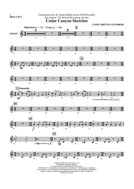 "Cedar Canyon Sketches - Horn 2 in F" Sheet Music by Carol Brittin Chambers
