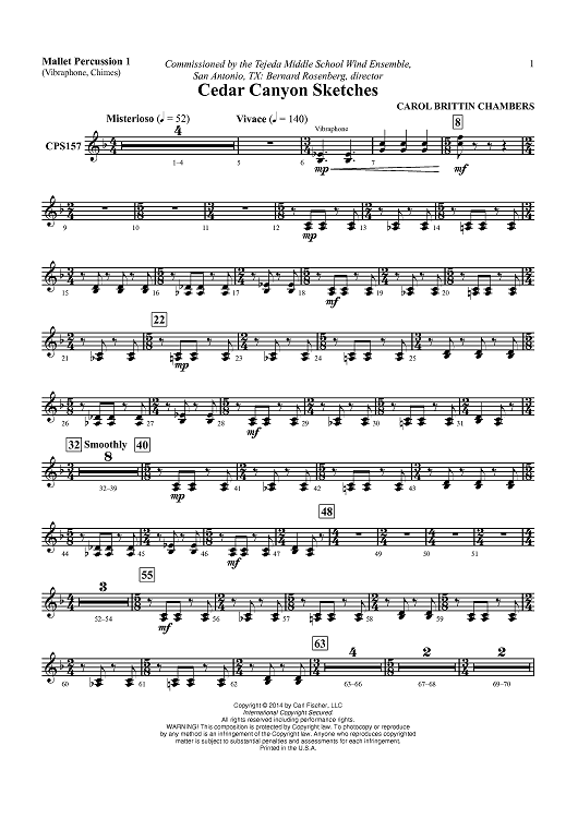 Digital Sheet Music for Cedar Canyon Sketches - Mallet Percussion 1 by Carol Brittin Chambers scored for Concert Band; id:453567