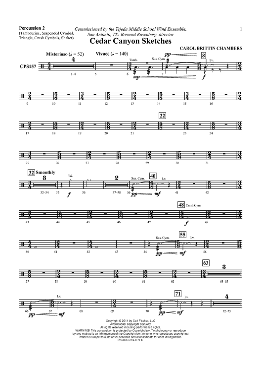 Digital Sheet Music for Cedar Canyon Sketches - Percussion 2 by Carol Brittin Chambers scored for Concert Band; id:453571