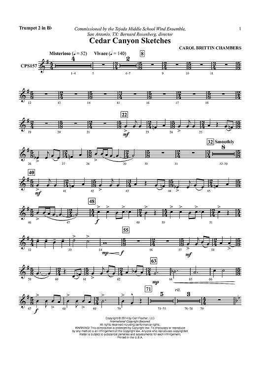 "Cedar Canyon Sketches - Trumpet 2 in Bb" Sheet Music by Carol Brittin Chambers