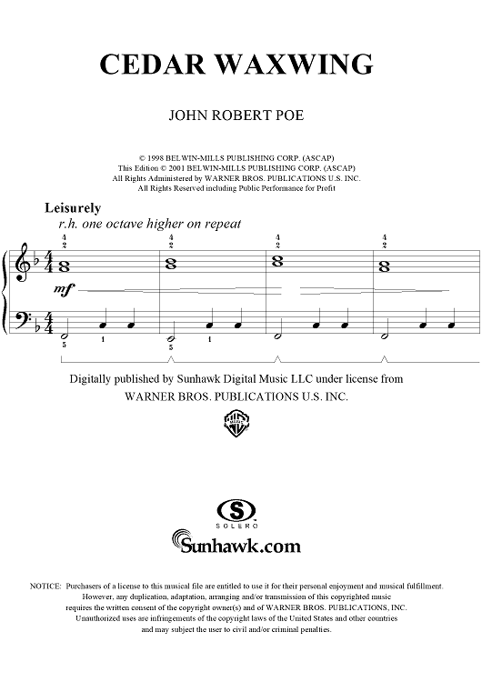 Digital Sheet Music for Cedar Waxwing by John Robert Poe scored for Piano Solo; id:285960