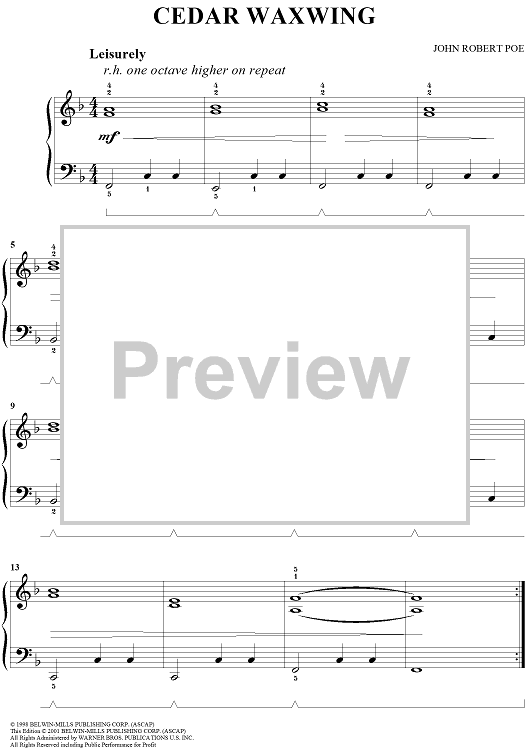 "Cedar Waxwing" Sheet Music by John Robert Poe