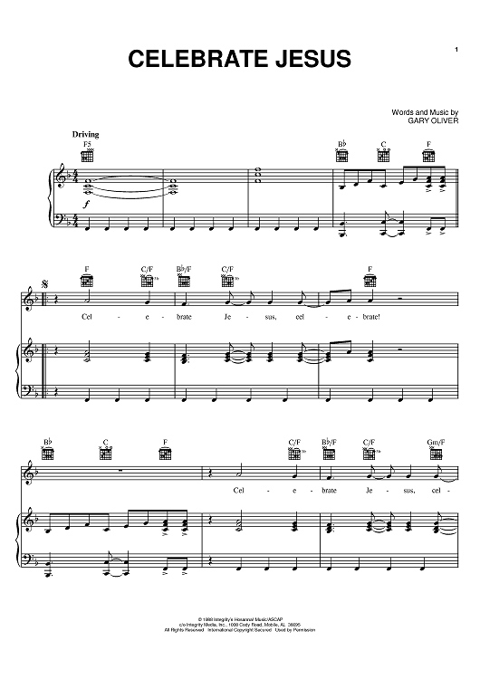 Digital Sheet Music for Celebrate Jesus by Gary Oliver scored for Piano/Vocal/Chords; id:371910