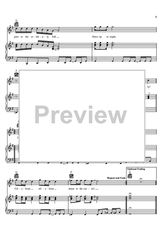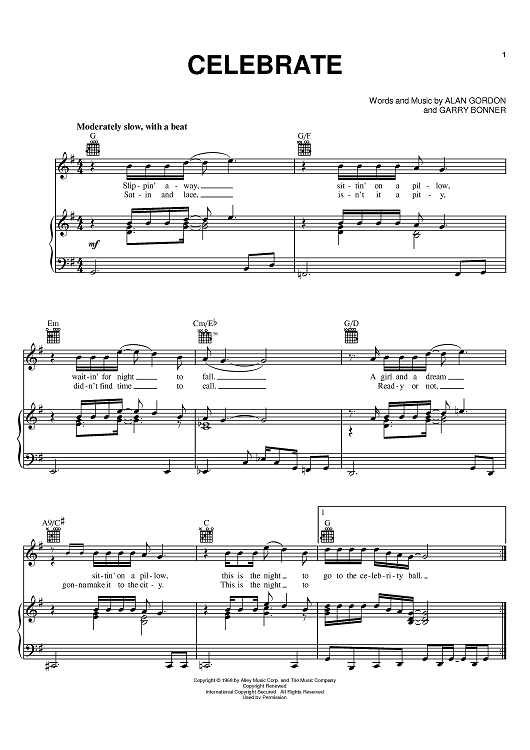 Digital Sheet Music for Celebrate by Alan Gordon, Garry Bonner, Three Dog Night scored for Piano/Vocal/Chords; id:383618