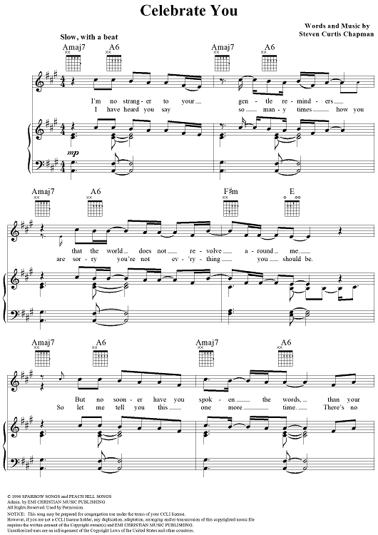 Digital Sheet Music for Celebrate You by Steven Curtis Chapman scored for Piano/Vocal/Chords; id:119393