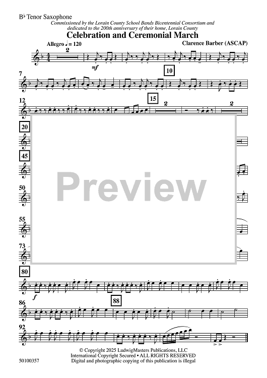 "Celebration and Ceremonial March - Bb Tenor Saxophone" Sheet Music by Clarence Barber